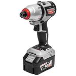 Ударный тангенциальный шуруповерт с шестигранным хвостовиками 1/4" (четверть дюйма) работает со стандартной оснасткой - битами и торцевыми головками, Вращающий момент образуется за счет соударения на каждом обороте в ударной муфте частей редуктора, называемых молот и наковальня. За счет разницы масс самого инструмента и закручиваемой оснастки, которая обычно достигает 100 и более раз и возникает эффект, когда крупный крепеж можно завернуть или отвернуть, всего лишь слегка придерживая инструмент. Сила затяжки регулируется за счет ограничения длительности воздействия (количества ударов).
