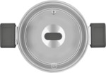 Материал: высококачественная нержавеющая сталь 18/10. Технология: тройное вштампованное, а затем вплавленное дно без воздушных полостей. Материал крышки: термостойкое стекло. Аксессуары: из бакелита с покрытием Soft Touch. Преимущества: равномерный прогрев изделия.