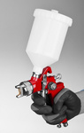 Особенности:Низкое выходное давление из пистолета и высокий расход воздуха позволяют получить высокий процент переноса ЛКМ на поверхность (около 70%), равномерное распределение ЛКМ на поверхности, существенное сокращение объема аэрозольного тумана, высокая экологичность и снижение расхода ЛКМ до 30%.