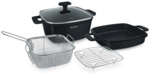 Коллекция I-unique — настоящая находка для продвинутых любителей кулинарии. Набор позволит приготовить множество блюд. Поместив решетку для запекания в кастрюлю, Вы сможете приготовить сочные стейки, рыбу или запечь овощи. Сковороду–гриль можно использовать и как посуду для томления блюд в духовке.