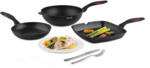 | Особенности: | Аксессуары: из бакелита с покрытием Soft Touch. Преимущества: специальное внешнее термостойкое покрытие для легкого ухода; Xylan® Plus – двухслойное, долговечное антипригарное покрытие для интенсивного использования. Упаковка: картонный рукав. |