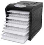 | Комплектация: | В комплекте 9 пластиковых поддонов для сушения, 5 поддонов для приготовления пастилы, 4 поддона для сушения трав и мелких продуктов. |