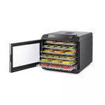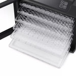 Температуру сушки можно регулировать от 35°С до 70°С с шагом 5°С, а таймер с настройкой до 19,5 часов позволяет точно контролировать процесс. Прозрачная дверца из закаленного стекла дает возможность следить за ходом сушки, не открывая прибор. Мощность 500 Вт и большая площадь поддонов (30х32 см) делают сушилку эффективной даже для крупных продуктов, а компактные размеры (450х345х333 мм) и стильный минималистичный дизайн гармонично впишутся в любую кухню.