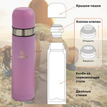 Термос LAIMA классический с узким горлом 0,5 л, нержавеющая сталь, розовый, 605120