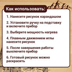 Предназначен для выжигания по дереву. Рекомендуется для детского творчества. Можно использовать как для домашних занятий, так и на уроках труда в школах и детских садах, в творческих мастерских, при обучении в кружках.